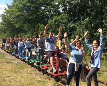 Le Vélorail, c'est quoi ? C'est une plateforme légère et ludique qui circule sur les voies ferrées, conçue pour accueillir jusqu'à 4 ou 5 personnes. Deux d'entre vous pédalent à l'avant, tandis que les autres profitent du paysage sur la banquette arrière.
