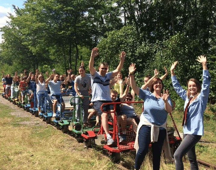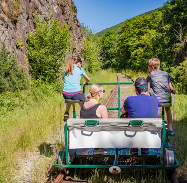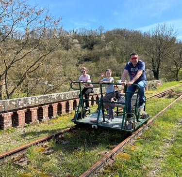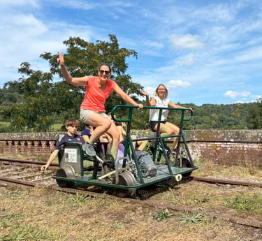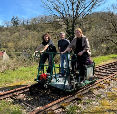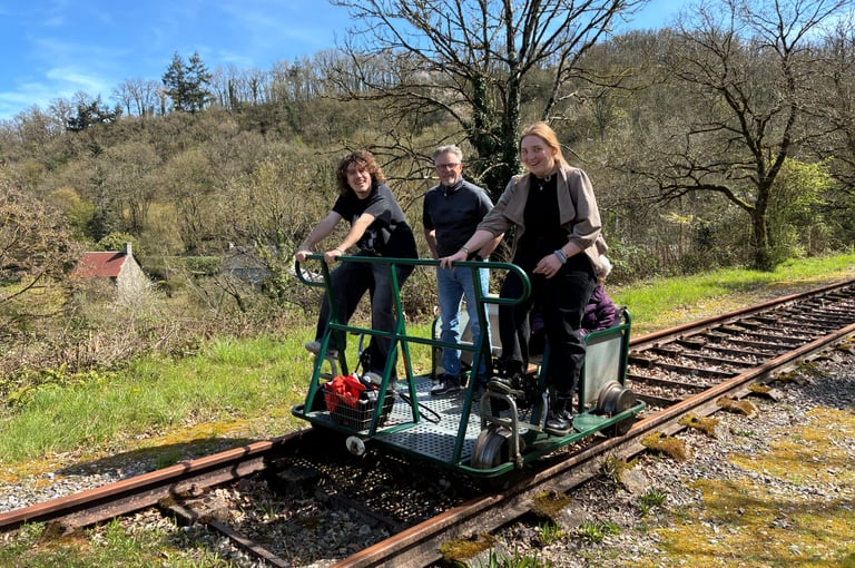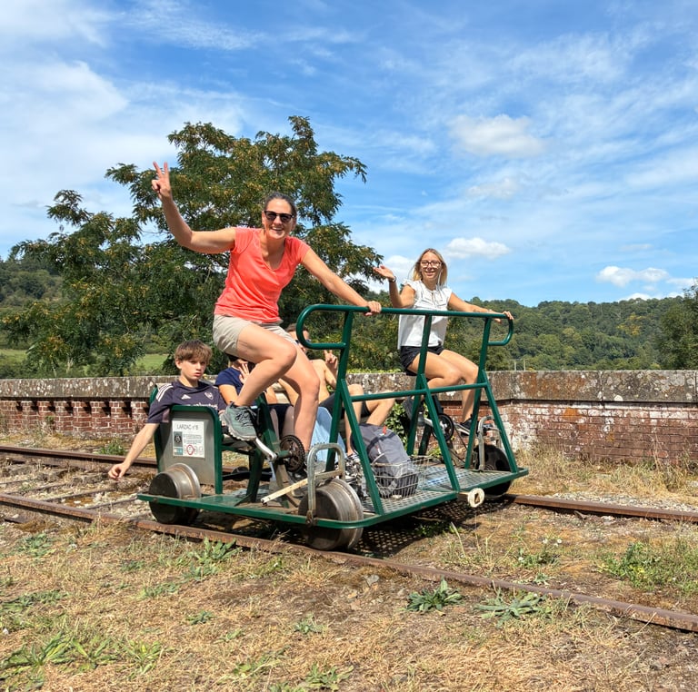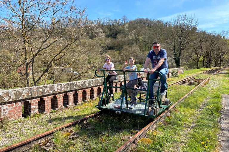 🚴 Un effort partagé : Montez à bord de nos vélorails. Un peu de jambes, beaucoup de rires ! Une activité physique accessible à tous pour explorer la ligne de façon dynamique.