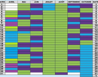 Période violette : groupes sur réservation uniquement.